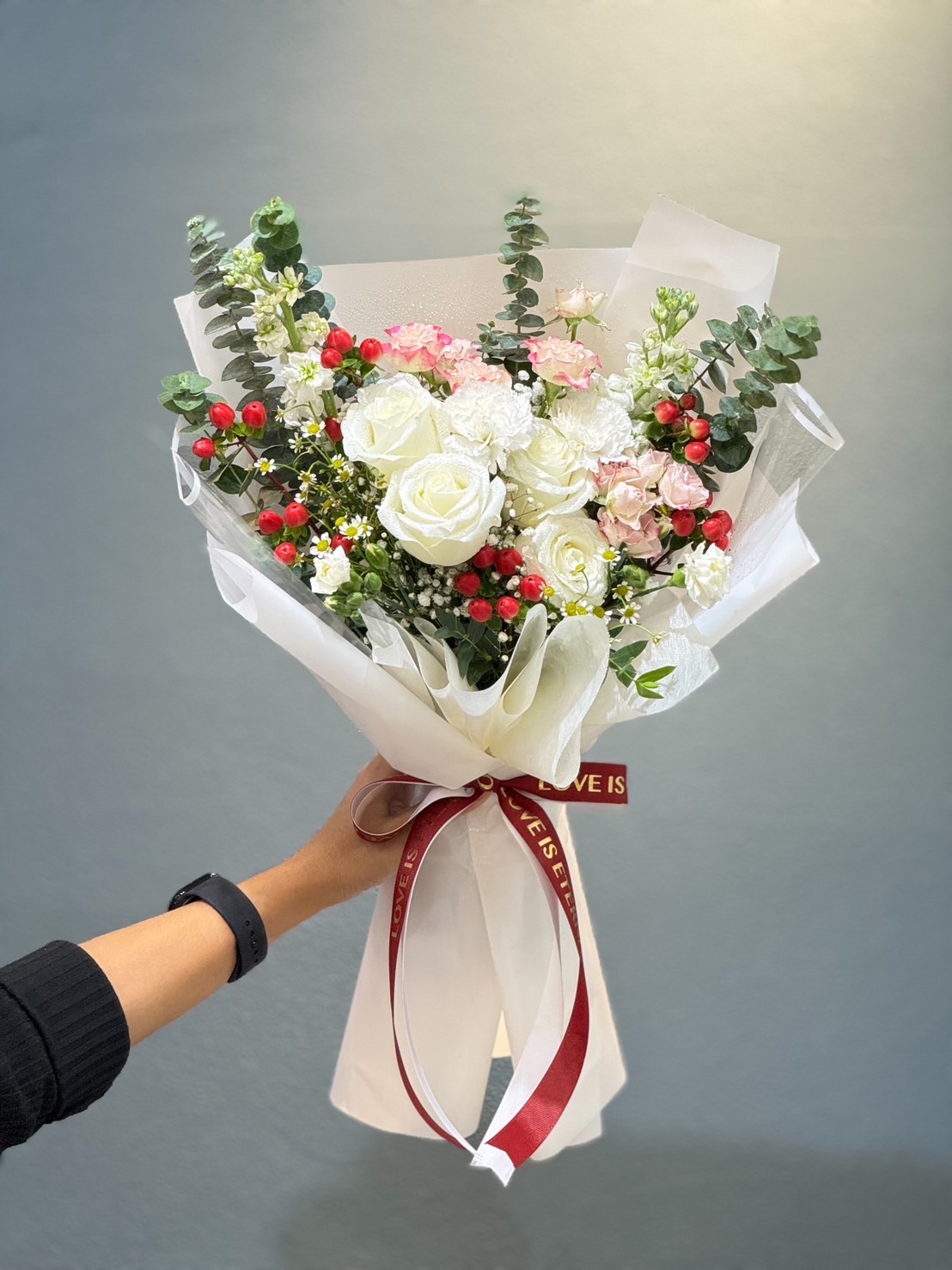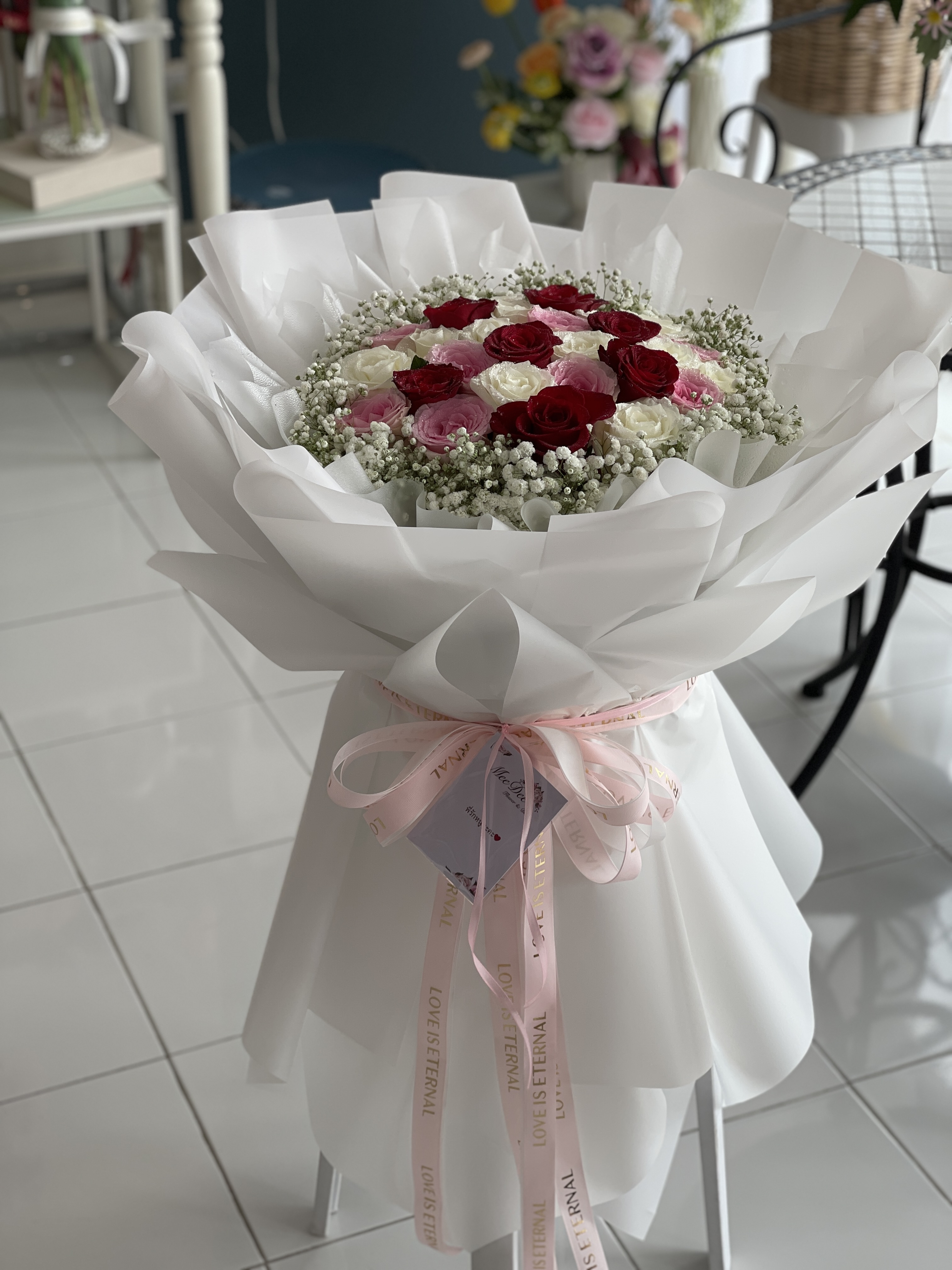 ช่อกุหลาบขาว แดง ชมพู 30 ดอก ปกติ 3,900.- โปรเดือนนี้ ลดเหลือ 2,490.-